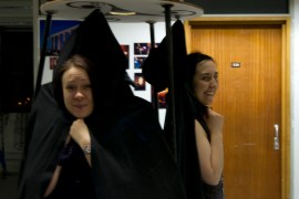 Laura, Rachel and Zander test out the interactivity of part of the Nightwatch display…