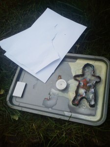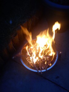 We wrote down our positive feelings, hopes, dreams and happy thoughts for Beltane night on little pieces of paper and sealed them in a wax poppet to keep in our space on the night. We put all our fears, anxieties, nervousness and negative feelings into another wax poppet…and burned him! Take that, negativity!