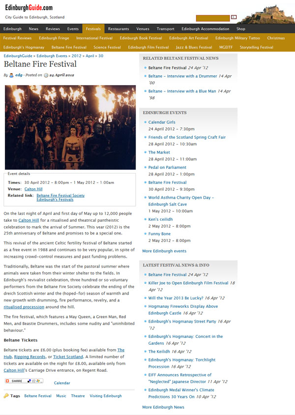 April 25, 2012March 27, 2016 by Beltane Fire Society Beltane Fire Festival on EdinburghGuide.com Check us out on EdinburghGuide.com and The List! SHARE THIS POST Click to share on X (Opens in new window) X Click to share on Facebook (Opens in new window) Facebook Click to share on Tumblr (Opens in new window) Tumblr Click to share on Reddit (Opens in new window) Reddit Click to share on Pinterest (Opens in new window) Pinterest Like Loading...