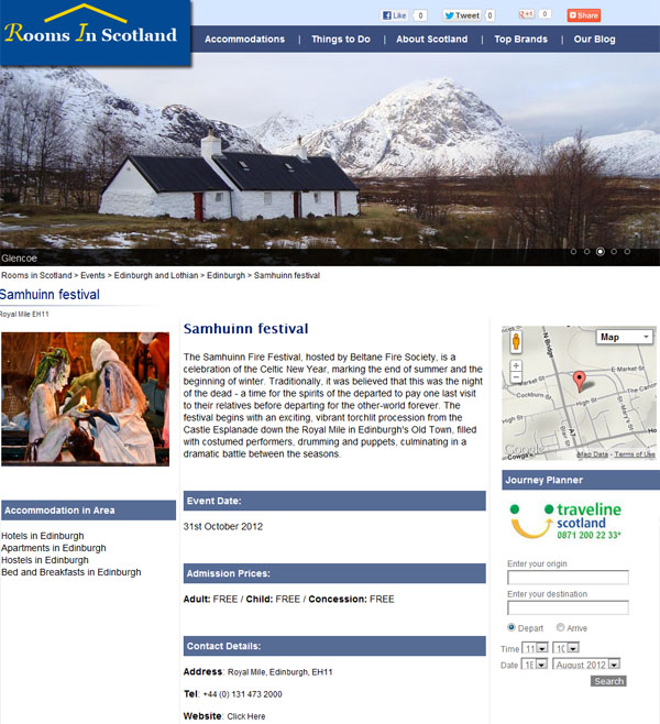 Rooms In Scotland has a wide selection of Scottish accommodation online and also promotes exciting events and attractions throughout the year…including Beltane Fire Society festivals!