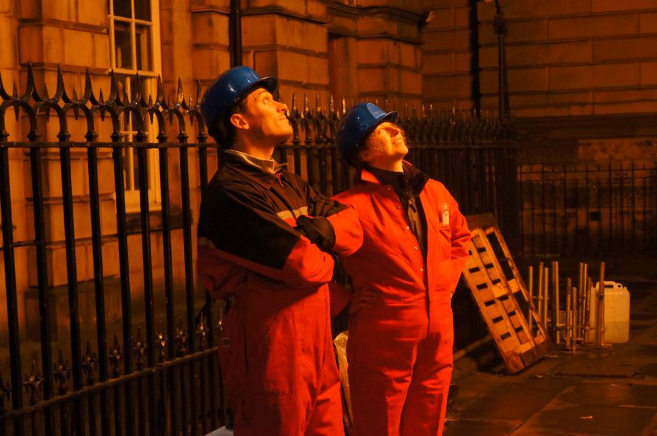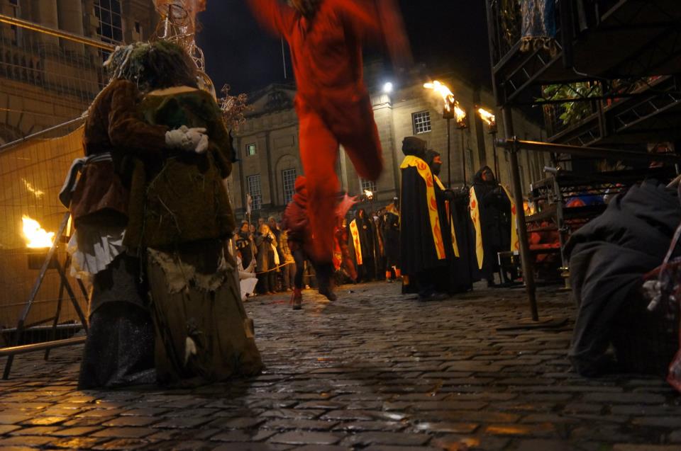 Running: Just before the start of the show, my duties took me running from production to the top of the hill with Tom – it’s so cool to run up the middle of the Royal Mile when it’s closed to traffic – then I was gophered back to Niddry Street, then back up to production to find Tom, who was of course back up to the top of the hill, then back to production, then back up to the top again to gopher for the Whites, realised that they weren’t where I thought they were, so back to production to get a position, then off to the Mound, by which time the Whites were lining up in the procession, so back up past the castle to Johnstone Terrace! I finally met the White helpers lining up in the procession; they said my timing was perfect, and after that everything seemed to go right for me all night.