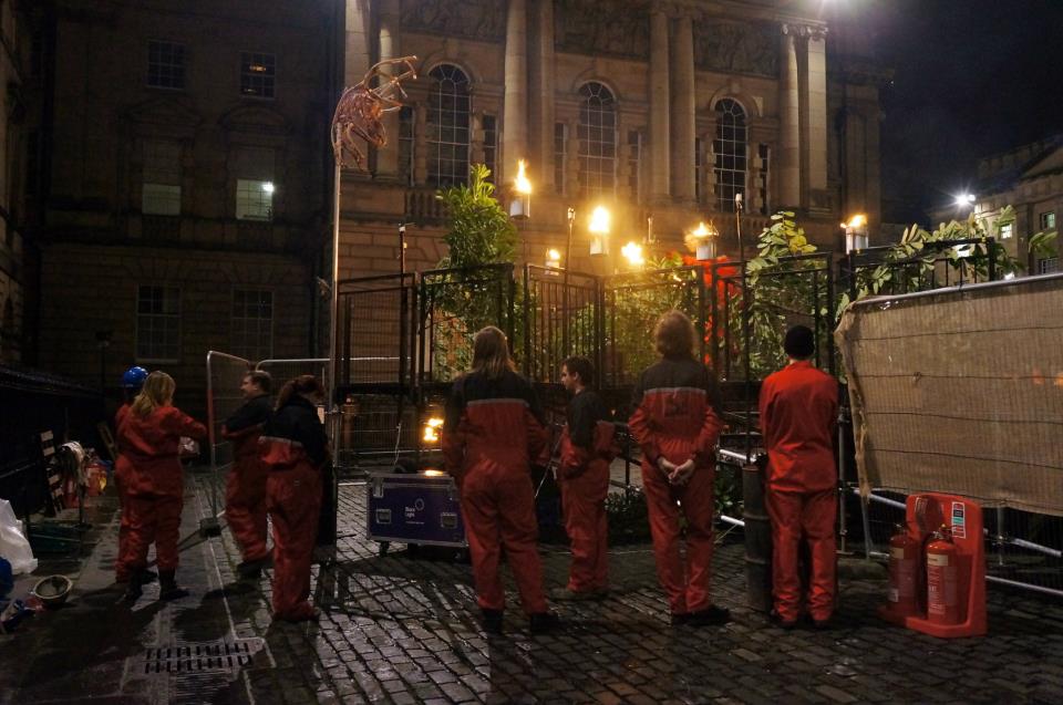 Tech are the red-boiler-suited backstage crew who set everything up, take it down, run the fire sculptures and do all the little behind-the-scenes things to make everything run smoothly. This was the first Samhuinn festival I’ve been involved with, and the second time I’ve Teched for BFS.
