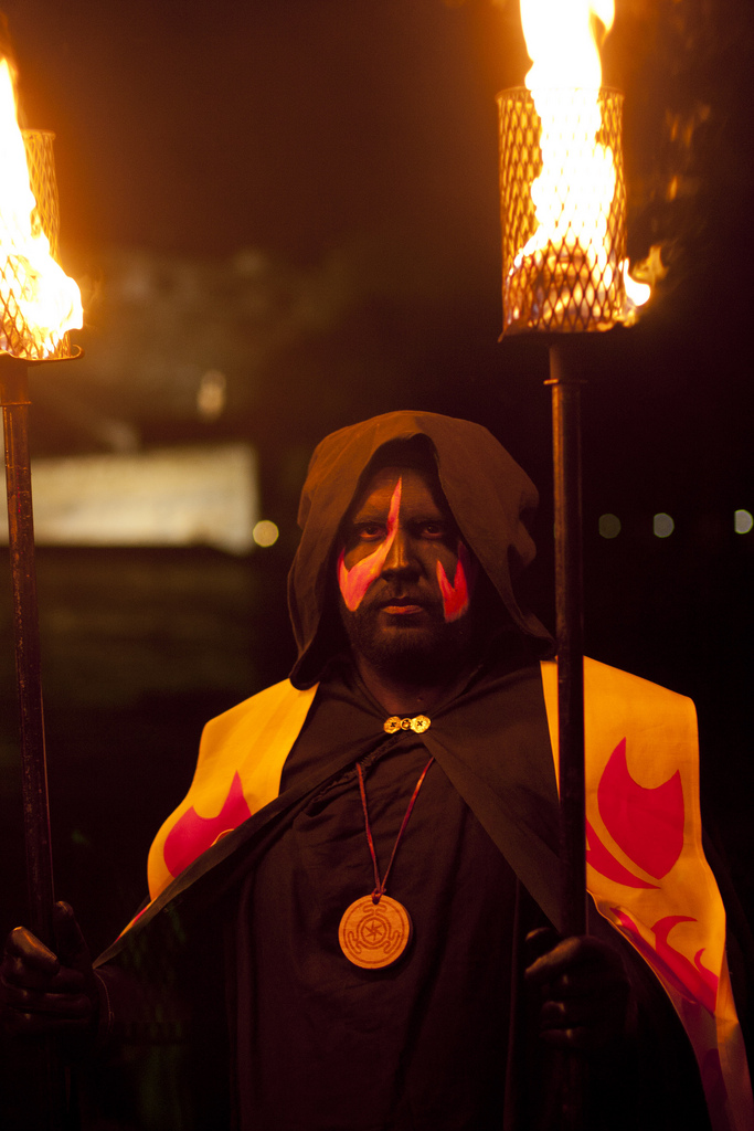 Steven as a Fire Priest at Samhuinn 2012. Photo by Simon Hay.