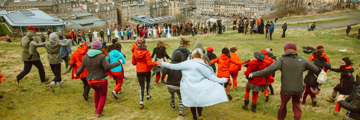 And finally all of the groups headed up onto The Hill for the first go at blocking the route, a crucial step in deciding who goes where on the night itself. It provided a chance for many groups to meet each other for the first time and to find their place in the 30th Beltane celebrations.