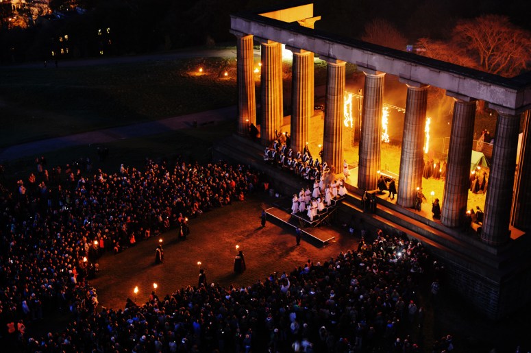 Another point of significance for the spot was that Edinburgh’s ‘Hallow’s Fair’, which began in the 1470s around Samhuinn (now known as Hallowe’en), was moved to Calton Hill in the 1800s, after the city authorities banned it from the town centre. The event was a festival, livestock market and drunken party held to celebrate one of the other Celtic quarter days that sits alongside Beltane, and it was felt that revellers would do less damage away from the city streets.