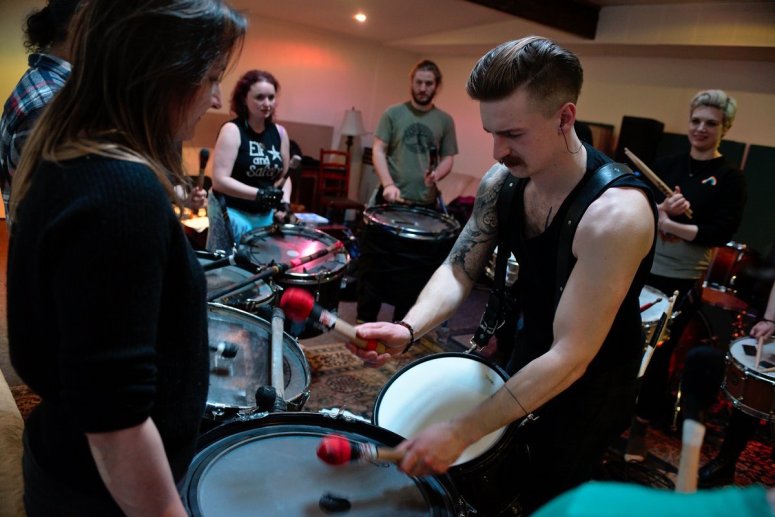 We come together to pass on our ancient, esoteric understanding of the mysteries and motions of the Earth and the stars through our drumming and voices. Our rhythms reflect the complexities of the world we know, the thundering power of earthquakes, the intricacies of starlit skies and the perfect, improbable convergence of all the aspects of our universe which allow us to exist. Eager anticipation of Summer drives our rhythms, but we bring with us a recognition and memory of all of the world’s past cycles and seasons, and an appreciation for their continuation in times to come.
