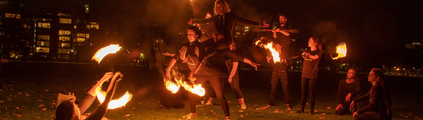 As Winter wakes up and takes over summer, our solemn stoicism grows into a powerful acro performance, representing the frozen grip of the season. We play with LED lights, whose white glow is evocative of wintry flames – the Northern Lights, the North Star, and the sun’s fire shining through ice.