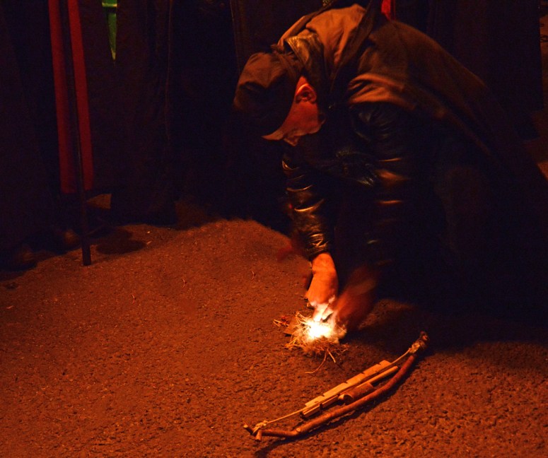 At Samhuinn Fire Festival, the Neid fire is still lit using the same traditional technique that has been passed down over hundreds of years. We start it by hand with a bow, a hazel spindle, and a pine hearth board, using a bit of good old-fashioned friction to spark the kindling. Once we have a smouldering ember, it is spun through the air in a metal contraption to give it plenty of oxygen and help it catch fully alight. All the other fire on the Hill is then lit using this special flame, uniting our community as we turn to face the cold months ahead.
