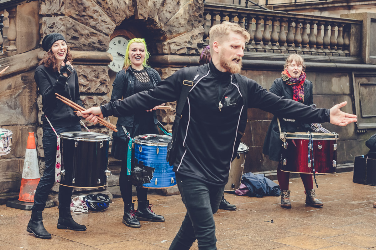 The Processionals are the beating heart of the procession at Beltane Fire Festival. Steady as their drums, they lay down a beat that drives the march forward behind the May Queen.