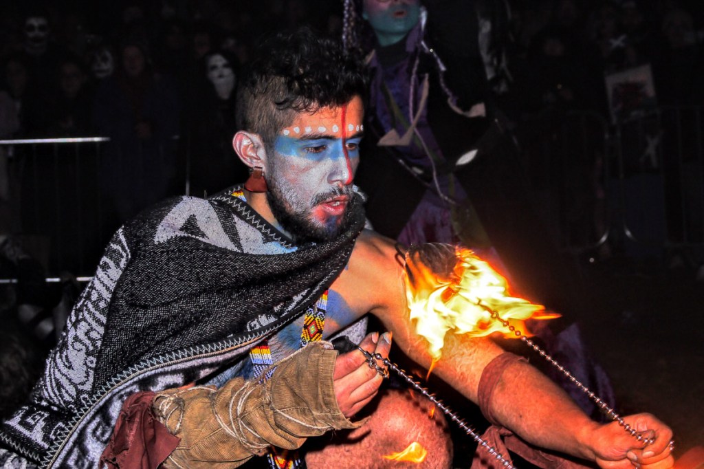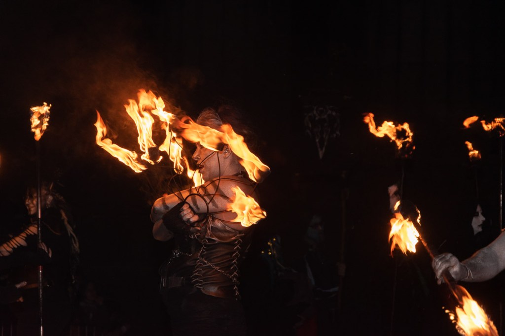 In our third release of photos from the night, we witness Obsidian’s eruptive energy, the Summer King’s final party with his troupe of Reds, and the Winter King and the Cailleach join together to light the final bonfire.