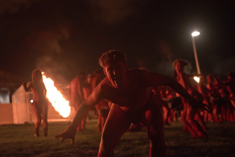 The Reds, counterpart in energy to the Whites – wild and chaotic – awaken alongside the procession and, upon the awakening of the Fire element, the passion and vigour within overcomes them. Attracted to the Divine light of the May Queen and the beauty of the Whites, they launch themselves at the procession.