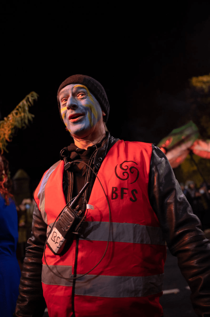 Our Stewards are the guardians of that liminal space between the City and the Festival. They, more than anyone else, are the volunteers with the power to create and hold physical performance space, engage with audience members, connect with the production crew and emergency services, and generally ensure everyone at our festival has a joyful and hassle-free night. Could you be our Wizard of Witness Welcoming, our Royal High-Viz-Ness?