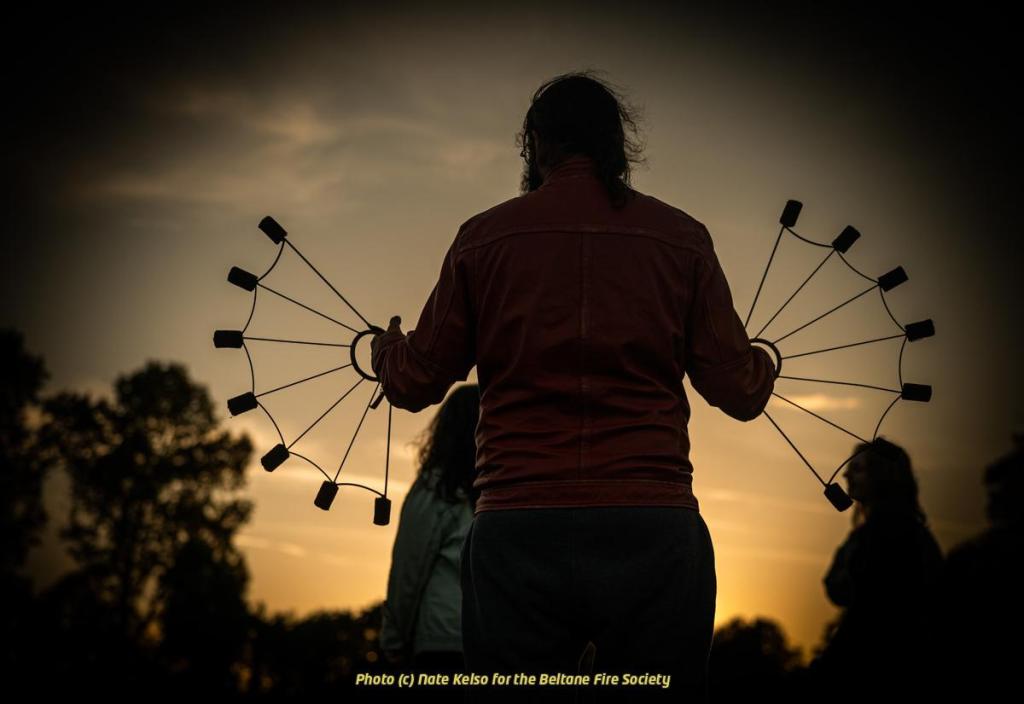 I have been doing these fire festivals since Samhuinn 2018, where I had no clue what was going on. I like to add ecology to festival stories. In snake-themed groups, for example, we entered or left hibernation. That was important to me. Ensuring the snake costume did not look like a ninja turtle was incidental (and difficult). Samhuinn is about Autumn, and Summer changing to Winter. Summer monarchs have often worn red and green, and had stories of change, war, love, and death.