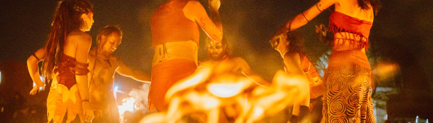 Among the elements represented at Beltane, Fire is the most immediately visible. The Neid Fire, the Bower hearth, every torchbearer, every fire sculpture, the Arch, Bonfire, Fire Point. It is by fire that the hill is mapped and navigated.